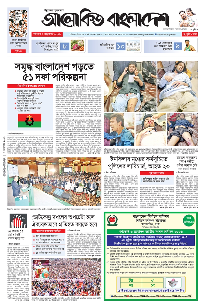 শহীদ শরীফ ওসমান হাদি হত্যার বিচারের দাবিতে রাষ্ট্রীয় অতিথি ভবন যমুনার সামনে বিক্ষোভ চলাকালে বিক্ষোভকারীদের উপর আইনশৃঙ্খলা বাহিনী কোনো ধরনের গুলি ছোঁড়েনি বলে জানিয়েছে অন্তর্বর্তী সরকার। শুক্রবার (৬ ফেব্রুয়ারি) এক বিবৃতিতে অন্তর্বর্তী সরকার জানায়, আজ শুক্রবার বিক্ষোভকারীরা ব্যারিকেড ভেঙে যমুনার অভিমুখে অগ্রসর হওয়ার চেষ্টা করলে এবং একপর্যায়ে...বিস্তারিত