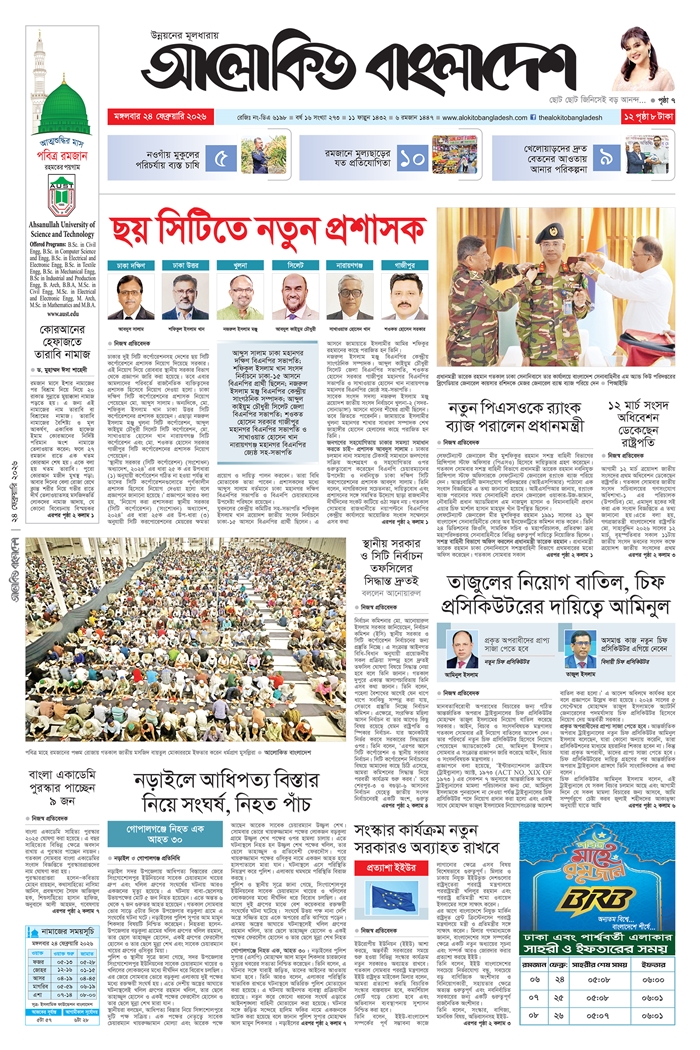 ঢাকা উত্তর-দক্ষিণসহ ছয় সিটি করপোরেশনে নতুন প্রশাসক নিয়োগ