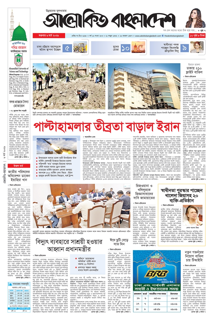 দেশের সামগ্রিক পরিস্থিতি বিবেচনা ও জনগণের সেবায় মনোযোগ দেওয়াকে বেশি জরুরি মনে করে রাজনীতিবিদ এবং গণমাধ্যমের সাংবাদিকদের সম্মানে আয়োজিত পূর্বঘোষিত দুটি ইফতার মাহফিল বাতিল করেছেন প্রধানমন্ত্রী তারেক রহমান। বৃহস্পতিবার (৫ মার্চ) প্রধানমন্ত্রীর অতিরিক্ত প্রেস সচিব আতিকুর রহমান রুমন এক বিবৃতির মাধ্যমে এই তথ্য নিশ্চিত করেছেন। তিনি জানান, দেশের...বিস্তারিত