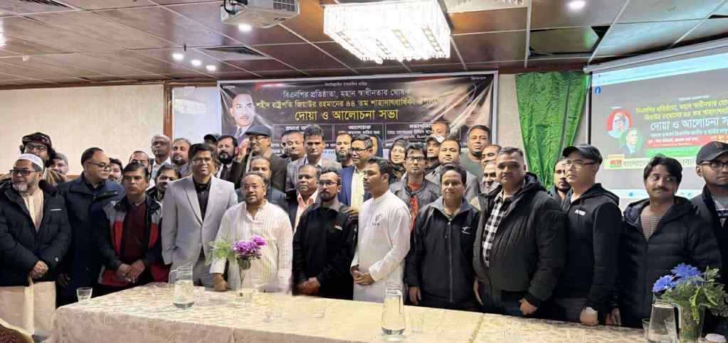 অস্ট্রেলিয়ার সিডনিতে সাবেক রাষ্ট্রপতি জিয়াউর রহমানের ৪৪তম শাহাদাৎবার্ষিকী উপলক্ষে দোয়া ও আলোচনা সভা অনুষ্ঠিত হয়েছে। রবিবার (০১ জুন ২০২৫) রকডেলস্থ স্টার বিরিয়ানি হল রুমে এ আলোচনা সভার আয়োজন করা হয়।
