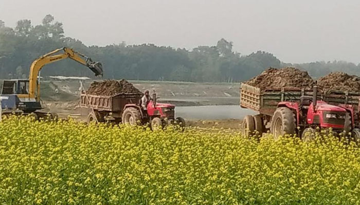 পাবনায় জমির ফসল নষ্ট করে মাটি কেটে ইটভাটায় বিক্রি