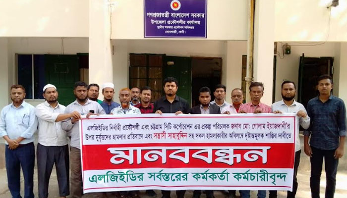 সোমবার সকালে উপজেলা এলজিইডি প্রকৌশলী অফিস প্রাঙ্গণে এ মানববন্ধন অনুষ্ঠিত হয়।