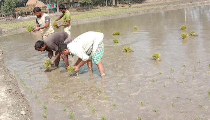 একই এলাকার চাষী মোখলেছুর জানান, এখন বোরো মৌসুম তাই আমিসহ আরোও চারজন শ্রমিক নিয়ে জমি তৈরি করে বীজ তুলে বোরো ধানের চারা রোপণ করছি। আল্লাহর রহমতে এবার ভালো ফলনের আশা করি।