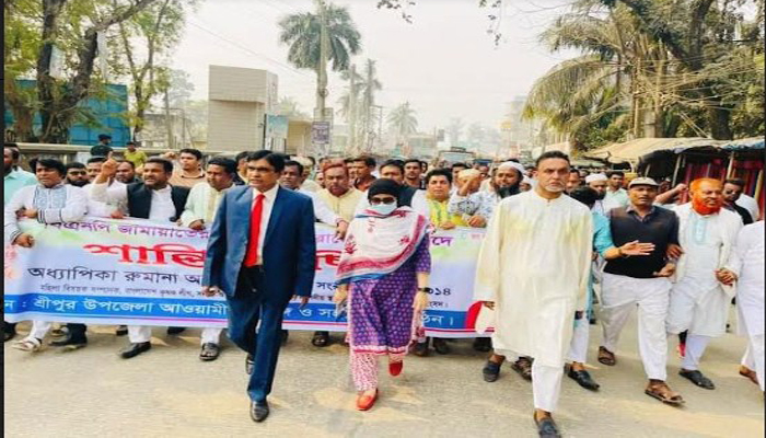 বিএনপির নৈরাজ্যের প্রতিবাদে শ্রীপুরে বিক্ষোভ মিছিল