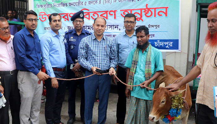 চাঁদপুরে ভিক্ষুক পুনর্বাসন ও বিকল্প কর্মসংস্থান কর্মসূচি হিসেবে চাঁদপুর পৌর এলাকায় ভিক্ষাবৃত্তিতে নিয়োজিত জনগোষ্ঠীর মধ্য থেকে ৫জনকে বিভিন্ন উপকরণ বিতরণ করা হয়েছে। তাদের হাতে ৪টি ভ্যানগাড়ি, একটি গবাদি পশু, নগদ অর্থ ও ব্যবসায়িক উপকরণ তুলে দেওয়া হয়েছে।