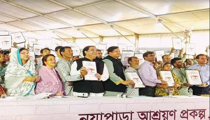 গাজীপুরের শ্রীপুরে চতুর্থ পর্যায়ে প্রধানমন্ত্রীর উপহার হিসেবে ভূমিহীন ও গৃহহীন ১৪২টি পরিবার জমিসহ আধা-পাকা ঘর পেয়েছে। উপজেলার গাজীপুর ইউনিয়নের নয়াপাড়া গ্রামে ঢাকা বিভাগের সর্ববৃহৎ আশ্রয়ণ প্রকল্প ৮ একর ৯০ শতাংশ জমির ওপর নির্মাণ করা এসব ঘর বুধবার (২২ মার্চ) গণভবন থেকে ভিডিও কনফারেন্সের মাধ্যমে যুক্ত হয়ে হস্তান্তর করেন প্রধানমন্ত্রী শেখ হাসিনা। একই সাথে শ্রীপুর উপজেলাকে ভূমিহীন-গৃহহীন মুক্ত ঘোষণা করা হয়।