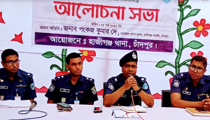 অতিরিক্ত পুলিশ সুপার (হাজীগঞ্জ সার্কেল) পংকজ কুমার দে বলেছেন, দ্রব্যমূল্য সহনীয় পর্যায়ে রাখতে ও যানজট নিরসনে সম্মিলিতভাবে কাজ করতে হবে। প্রধানমন্ত্রী ঘোষিত স্মার্ট বাংলাদেশ অর্থাৎ সুখী ও সমৃদ্ধ সমাজ বি-নির্মাণে পারস্পরিক সহযোগিতা বাড়াতে হবে। প্রত্যেককে সুনাগরিক হিসেবে দায়িত্ব পালন করতে হবে।