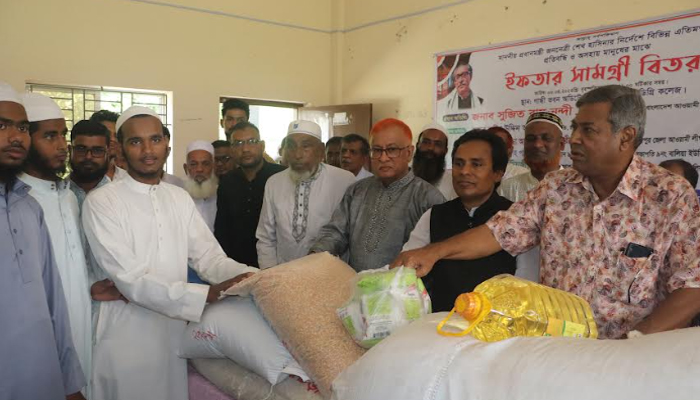 বৃহস্পতিবার (৬ এপ্রিল) দুপুরে চাঁদপুর সদর উপজেলার ফরক্কাবাদ ডিগ্রী কলেজ গান্ধী ভবন অডিটোরিয়ামে প্রধানমন্ত্রী শেখ হাসিনার নির্দেশে বিভিন্ন এতিমখানা, মাদ্রাসা, প্রতিবন্ধী ও অসহায়দের মাঝে ইফতার সামগ্রী বিতরণকালে প্রধান অতিথির বক্তব্যে তিনি এসব কথা বলেন।