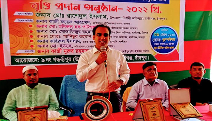 বৃহস্পতিবার (০৬ এপ্রিল) চাঁদপুরের হাজীগঞ্জ উপজেলাধীন ৯ নং গন্ধর্বপুর (উ.) ইউনিয়ন পরিষদ আয়োজিত শিক্ষাবৃত্তি প্রদান অনুষ্ঠানে প্রধান অতিথির বক্তব্যে তিনি এসব কথা বলেন।