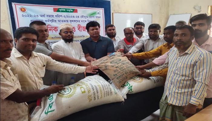 পাবনার সাঁথিয়ায় ২০২২-২৩ অর্থবছরে খরিপ-২/২০২৩-২৪ মৌসুমে রোপা আপন প্রণোদনা কর্মসূচীর আওতায় কৃষকদের মাঝে বিনামূল্যে রাসায়নিক সার ও বীজ বিতরণ করা হয়েছে।