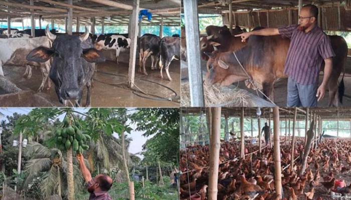 তিনি বলেন, এই ফার্মে ৩টি খামারে রয়েছে ১৫ হাজার সোনালী মুরগী। পাশে কলা বাগানসহ সবজি উৎপাদনের বাগান রয়েছে। আর খামারের মুরগী ও গরুর বর্জ্যকে মাছ চাষের খাবারের কাজে লাগানো হয়। এই পুকুরে রুই কাতলা,মৃগেলসহ কয়েক লাখ টাকার মাছ আছে। শুধু তাই নয়, খামারের গরুর গোবর থেকে বায়োগ্যাস উৎপাদন করে আমার হোটেলের জ্বালানী চাহিদাও মিটানো হয়ে থাকে।