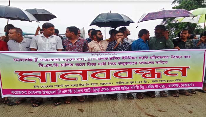 বক্তারা অভিযোগ করে বলেন, সরকারের আইনের প্রতি শ্রদ্ধা রেখেই আমরা গাড়ি চালাই। শ্রমিক ইউনিয়নের নামে একশ্রেণীর লোক মোহনগঞ্জ-নেত্রকোণাসহ অন্যান্য সড়কের বিভিন্ন স্থানে আমাদের গাড়ি (সিএনজি চালিত অটো রিক্সা) আটকে জোর করে চালকদের নিকট থেকে চাঁদা আদায় করছে। প্রভাবশালীদের ছত্রচ্ছায়ায় থেকে তারা অবৈধ চাঁদাবজি চালিয়ে যাচ্ছে। চাঁদাবাজদের বিরুদ্ধে ব্যবস্থা গ্রহণ সরকারের দায়িত্ব।