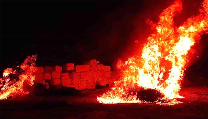 পুড়িয়ে দেওয়া হলো ৩০লাখ টাকার অবৈধ চায়না দুয়ারী জাল