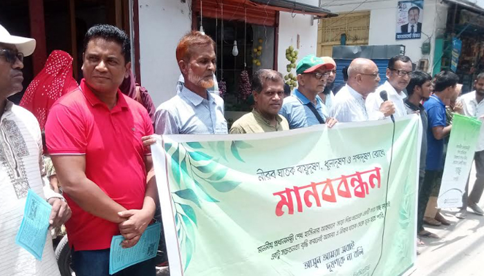 পাবনায় দূষণ প্রতিরোধে জনসচেতনতায় মানববন্ধন