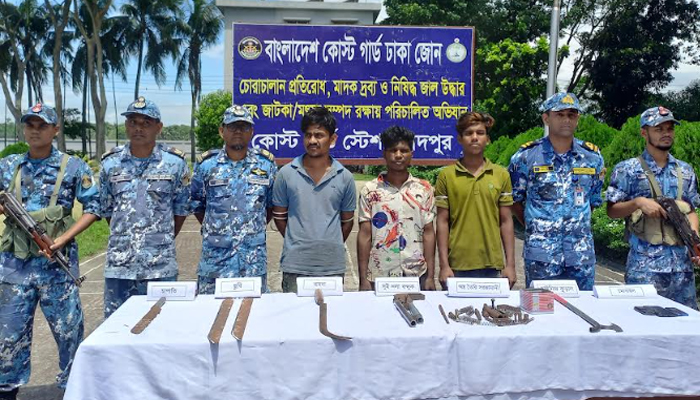 চাঁদপুরের মতলব উত্তর উপজেলার এখলাছপুর ইউনিয়নে অভিযান চালিয়ে একটি দুইনলা বন্দুক, বিভিন্ন ধরনের দেশীয় অস্ত্র ও বিপুল পরিমাণ অস্ত্র তৈরীর সরঞ্জামাদিসহ ৩ ডাকাত দলের সদস্যকে আটক করেছে কোস্ট গার্ড।