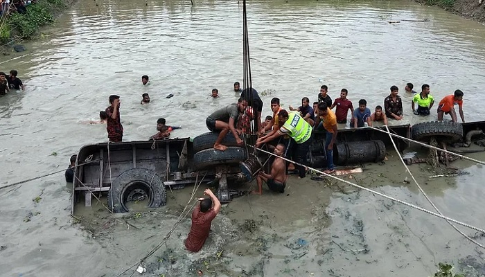 ঝালকাঠিতে নিয়ন্ত্রণ হারিয়ে বাস পুকুরে, নিহত বেড়ে ১৮