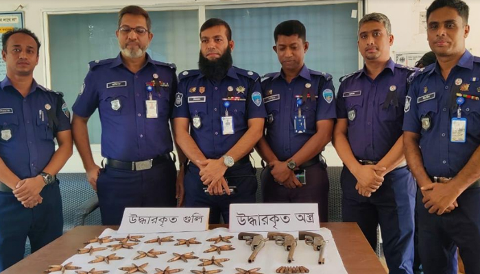 তার কাছ থেকে উদ্ধার করা হয়েছে দেশিয় তৈরী ৩ টি বন্দুক ও ৯৮ টি রাইফেলের গুলি।