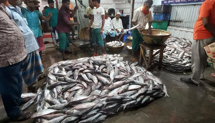 ইলিশে মাছের আড়ৎ সরগরম, আমদানীর তুলনায় কমেনি দাম
