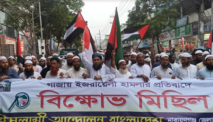 গাজায় গণহত্যা বন্ধের দাবিতে নারায়ণগঞ্জে বিক্ষোভ মিছিল