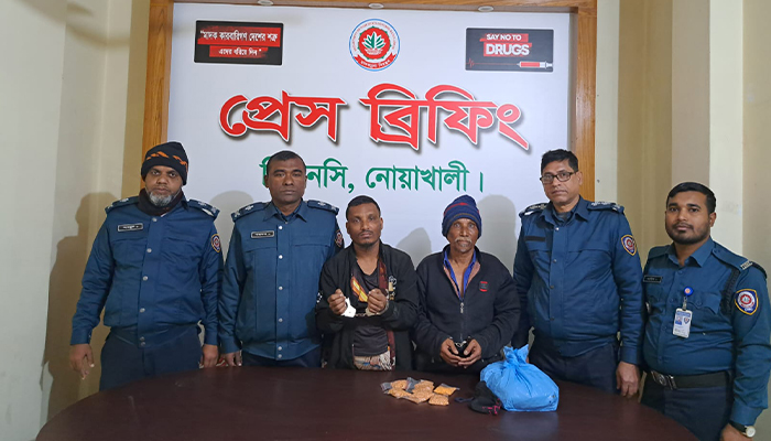 নোয়াখালীর সদর উপজেলা থেকে ৩ হাজার ৫'শ পিস ইয়াবা ও ৭"শ গ্রাম গাঁজাসহ জাকির হোসেন খান ও বাদশা খান নামের দুই মাদক কারবারিকে গ্রেপ্তার করেছে জেলা মাদকদ্রব্য নিয়ন্ত্রণ অধিদপ্তর।