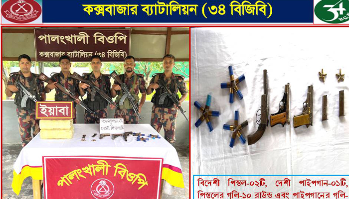 কক্সবাজারের উখিয়ায় ১ লাখ পিস ইয়াবা ও ২টি বিদেশি পিস্তল জব্দ করেছে বিজিবি। এসময় ১টি দেশিয় তৈরী পাইপগান, ১০ রাউন্ড পিস্তলের গুলি এবং ১৫ রাউন্ড পাইপগানের গুলিও জব্দ করা হয়। তবে এ ঘটনায় কাউকে আটক করতে পারেনি সংস্থাটি।