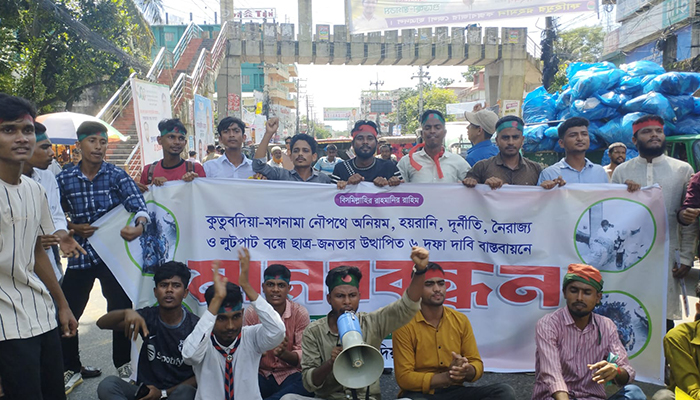 কক্সবাজারের কুতুবদিয়া-মগনামা নৌপথে অনিয়ম, হয়রানি, দুর্নীতি, নৈরাজ্য ও লুটপাট বন্ধেসহ ৬ দফা দাবিতে মানববন্ধন করেছে কুতুবদিয়া ছাত্র-জনতা।
