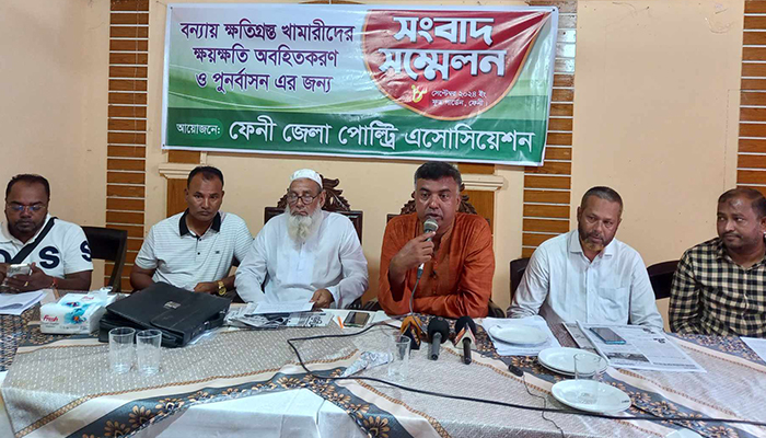 সংবাদ সম্মেলনে পোল্ট্রি মালিক সমিতির কর্মকর্তারা জানান সম্প্রতি বন্যায় ফেনী জেলার ৮০ ভাগ পোল্ট্রি ফার্ম তলিয়ে গেছে, ২০ ভাগ পোল্ট্রি আংশিক ক্ষতিগ্রস্থ হয়েছে। এতে জেলার ৫ হাজার ছোট বড় পোল্ট্রি মালিকের প্রায় ৪ শত কোটি টাকা ক্ষতি হয়েছে। এমতাবস্থায় সরকারের সহযোগিতা ছাড়া ফেনীর পোল্ট্রি শিল্প উৎপাদনে যাওয়া সম্ভব নয়।