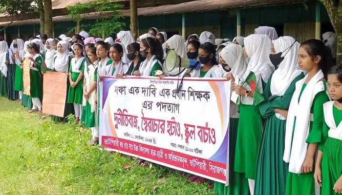 সিরাজগঞ্জে প্রধান শিক্ষকের অপসারণ দাবীতে মানববন্ধন