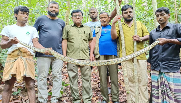 চকরিয়ায় ১০ ফুট লম্বা অজগর সাপ উদ্ধার, বনে অবমুক্ত