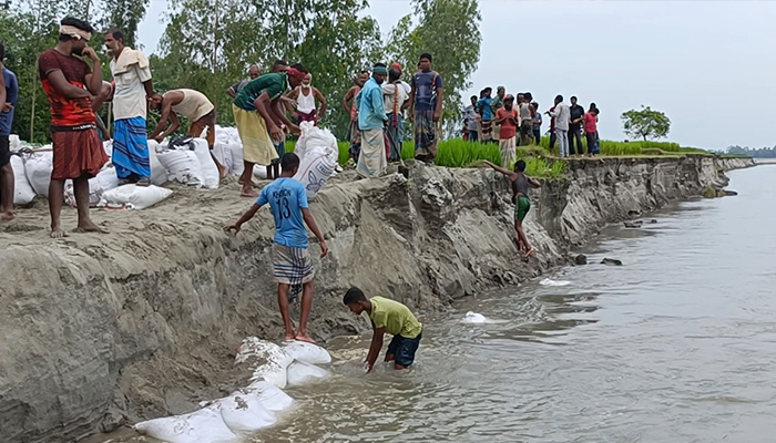 ভূরুঙ্গামারীতে নদের ভাঙনরোধে সেচ্ছাশ্রম এলাকাবাসীর