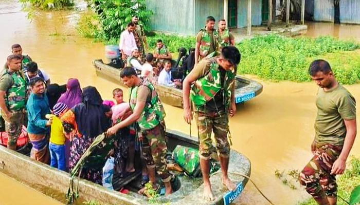 হালুয়াঘাটে বন্যায় চলছে সেনাবাহিনীর উদ্ধার কার্যক্রম