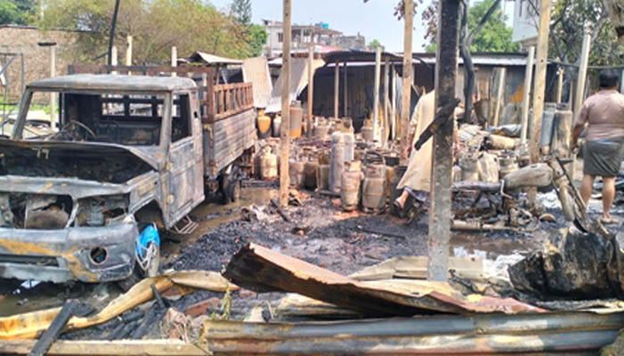 নান্দাইলে গ্যাস সিলিন্ডার গোডাউনে ভয়াবহ আগুন