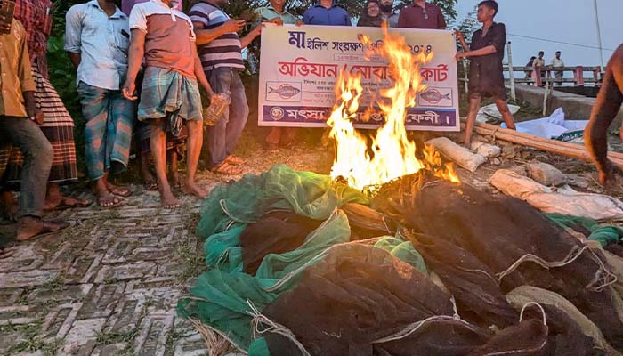 ফেনীর সোনাগাজীতে মা ইলিশ সংরক্ষণ অভিযানে ৩২ হাজার মিটার অবৈধ জাল আগুনে পুড়িয়ে ধ্বংস করেছেন ভ্রাম্যমান আদালত।