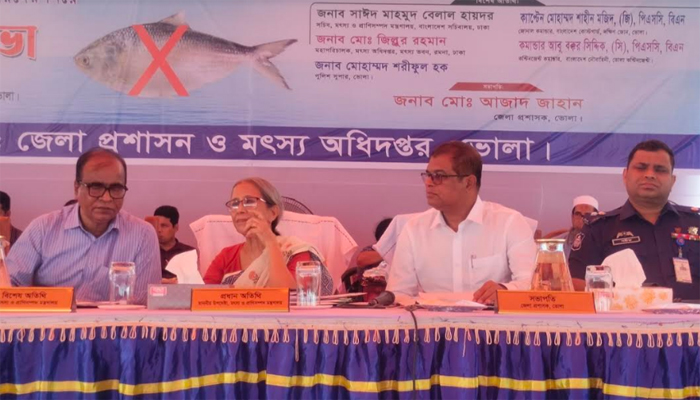 মঙ্গলবার (২২ অক্টোবর) দুপুরে ভোলার খাল সংলগ্ন বালুরমাঠে জেলা প্রশাসন ও মৎস্যবিভাগ কর্তৃক আয়োজিত সচেতনতা সভায় প্রধান অতিথির বক্তব্যে তিনি এ কথা বলেন।