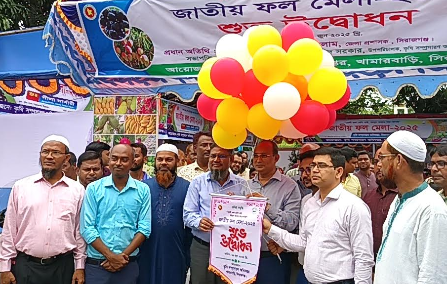 সিরাজগঞ্জে তিন দিনব্যাপী জাতীয় ফল মেলা শুরু হয়েছে। ‘দেশি ফল খাই, আসুন ফলের গাছ লাগাই’ এ স্লোগানকে সামনে রেখে বৃহস্পতিবার সকালে বাজার স্টেশন এলাকার মুক্তির সোপানে এ মেলার উদ্বোধন করেন জেলা প্রশাসক মুহাম্মদ নজরুল ইসলাম। এ উদ্বোধনী অনুষ্ঠানে তিনি বলেন, দেশীয় ফল সুস্বাদু ফল এবং পুষ্টির চাহিদা প‚রণেও গুরুত্বপ‚র্ণ ভ‚মিকা রাখে। এ ফল মেলার মাধ্যমে দেশীয় ফল চাষে আগ্রহ বাড়বে এবং ফল বিক্রির জন্য কৃষকদের এটি একটি বড় সুযোগ।