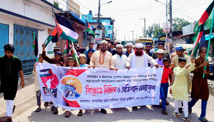 ইরানে মার্কিন মদদপুষ্ট ইসরায়েলের হামলার বিরুদ্ধে রংপুরে বিক্ষোভ মিছিল ও সমাবেশ অনুষ্ঠিত হয়েছে।