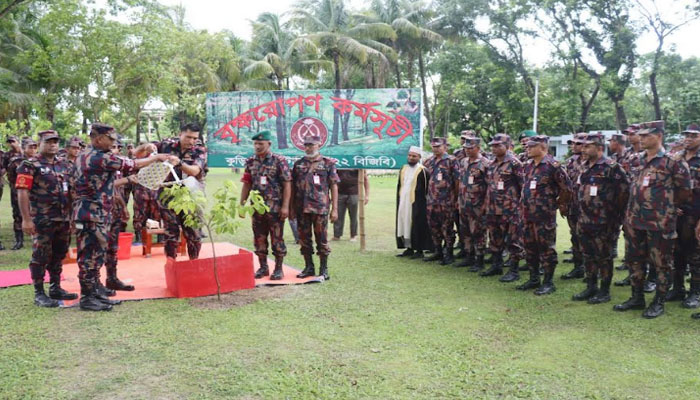 বিজিবি জানায়, বৃক্ষরোপণের কার্যক্রম আজ (বৃহস্পতিবার) উদ্বোধন করা হয়েছে, যা চলমান থাকবে। এ বছর এ ব্যাটালিয়ন, সদর এবং বিওপি পর্যায়ে ২ হাজার ফলজ ও বনজ গাছের চারা রোপণের পরিকল্পনা গ্রহণ করা করেছে।