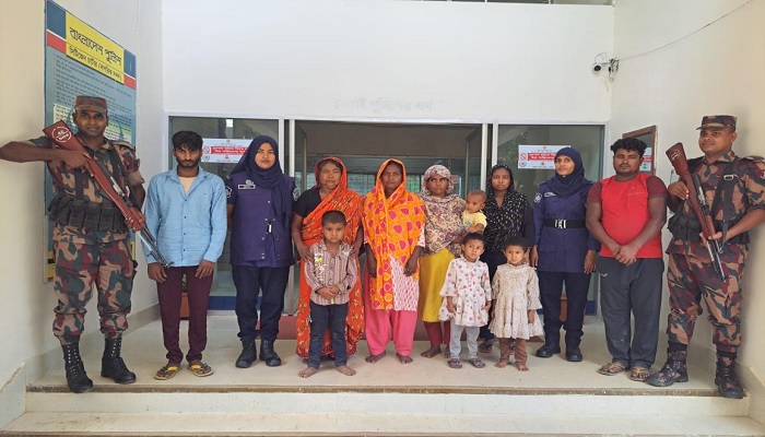 আটককৃতরা হলেন- সাতক্ষীরা জেলার তালা উপজেলার শাহজাদপুর গ্রামের মৃত আমজাদ আলীর ছেলে আল আমিন (২৯), মৃত গাফফার আলীর ছেলে বাবু আলী (২৩), মৃত আমজাদ আলীর স্ত্রী সখিনা বেগম (৫০), মৃত গাফফার আলীর স্ত্রী সোনা বানু (৪৫), আলম আমীনের ছেলে কাজল (২৪), জামালের স্ত্রী ফাতেমা (২১), আল আমীনের সাত বছর বয়সী ছেলে আদিল, সাত মাস বয়সী অপর ছেলে ইয়ামিন, জামালের তিন বছর বয়সী কন্যা লামিয়া ও অপর কন্যাশিশু রাবিয়া।