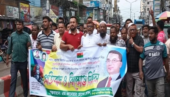 প্রতিবাদ সমাবেশে সভাপতিত্ব করেন ও সংক্ষিপ্ত বক্তব্য রাখেন, পৌর বিএনপির সাবেক যুগ্ম সাধারণ সম্পাদক ও ১০ নং ওয়ার্ডের সাবেক কাউন্সিলর মো. বিল্লাল হোসেন।