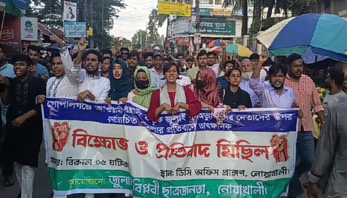 মিছিলটি জেলা শহরের প্রধান সড়ক প্রদক্ষিণ করে। পরে নোয়াখালী সুপার মার্কেটের সামনে সমাবেশে অনুষ্ঠিত হয়।