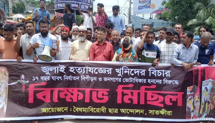 বৃহস্পতিবার (১৭ জুলাই) দুপুরে ১২টায় সাতক্ষীরা শহরের খুলনা রোড মোড়ে এ সমাবেশের আয়োজন করেন বৈষম্যবিরোধী ছাত্র আন্দোলন।