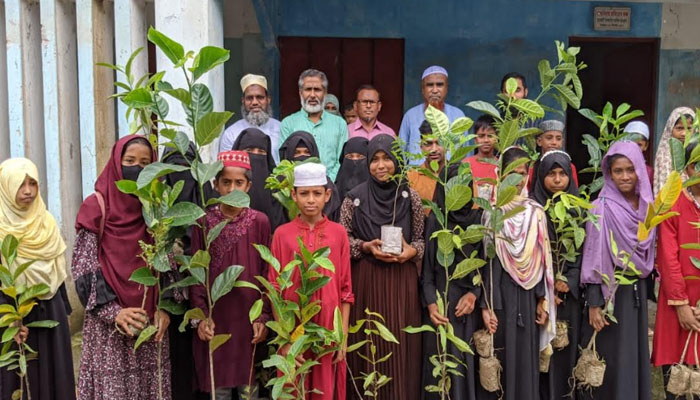 এই কর্মসূচির অংশ হিসেবে উপজেলার বানেশ্বরদী ইউনিয়নের ঐতিহ্যবাহী বানেশ্বরদী ইসলামিয়া দাখিল মাদ্রাসার শিক্ষার্থীদের হাতে একটি করে কাঁঠাল, জাম, নীম ও কদবেলের চারা তুলে দেওয়া হয়।