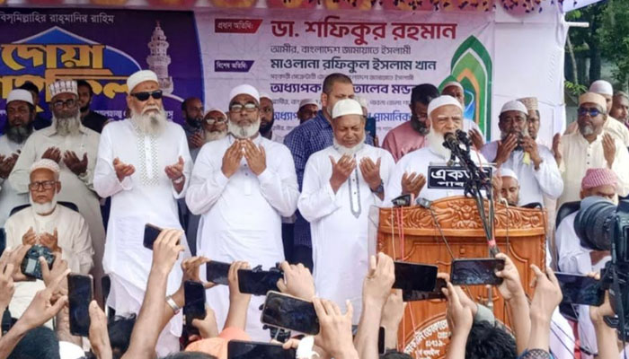 এর আগে, দুপুরে হেলিকপ্টার যোগে পাবনার ঈশ্বরদীর স্টেডিয়াম মাঠে অবতরণ করেন জামায়াতে ইসলামীর আমির ডা. শফিকুর রহমান। এরপর চর মিরকামারীর কবরস্থানে কবর জিয়ারত করেন। এরপর মৃত ব্যক্তির বাড়িতে গিয়ে পরিবারের সঙ্গে সাক্ষাৎ করেন। এছাড়াও গতকাল মাইলস্টোন স্কুল অ্যান্ড কলেজে বিমান দুর্ঘটনায় নিহতদের রুহের মাগফিরাত কামনা করে বিশেষ দোয়া করা হয়।