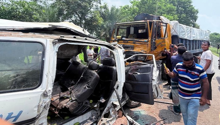 বুধবার (২৩ জুলাই) সকাল ১০টার দিকে বনপাড়া-হাটিকুমরুল মহাসড়কের তরমুজ পাম্প এলাকায় এই দুর্ঘটনা ঘটে। তাৎক্ষণিকভাবে হতাহতদের পরিচয় জানা যায়নি।