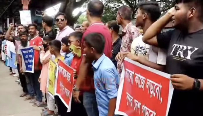 শনিবার (২৬ জুলাই) দুপুরে স্টেশন চত্বরে পাঠক শিল্প সাহিত্য ও সামাজিক পরিষদের উদ্যোগে এ কর্মসূচি অনুষ্ঠিত হয়।