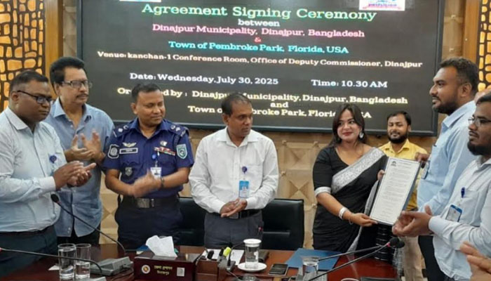 দেশের ইতিহাসে প্রথমবারের মত যুক্তরাষ্ট্রের ফ্লোরিডা অঙ্গরাজ্যের টাউন পেমব্রোক পার্কের সঙ্গে দিনাজপুর পৌরসভার বন্ধুত্ব চুক্তি স্বাক্ষরিত হয়েছে।