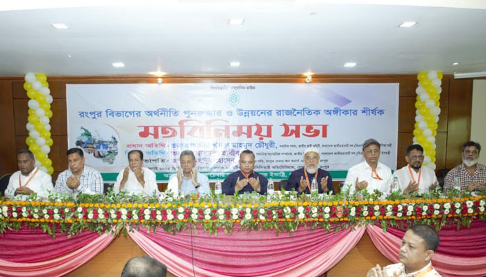 বৃহস্পতিবার (৩১ জুলাই) রংপুর চেম্বার অব কমার্স অ্যান্ড ইন্ডাস্ট্রির আয়োজনে “রংপুর বিভাগের অর্থনীতি পুনরুদ্ধার ও উন্নয়নের রাজনৈতিক অঙ্গীকার” শীর্ষক মতবিনিময় সভায় প্রধান অতিথির বক্তব্যে এসব কথা বলেন তিনি।
