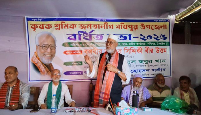 শনিবার (৬ সেপ্টেম্বর) দুপুরে টাঙ্গাইলের সখীপুর পৌরসভার খান মার্কেটে দলীয় কার্যালয়ে উপজেলা কৃষক শ্রমিক জনতা লীগের বর্ধিত সভায় কৃষক শ্রমিক জনতা লীগের সভাপতি বঙ্গবীর কাদের সিদ্দিকী এ কথা বলেন।