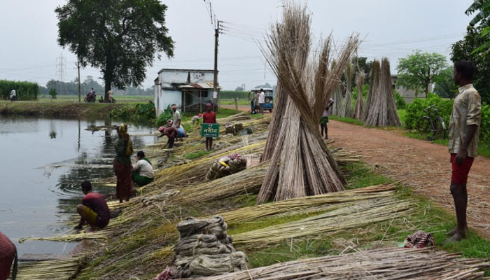 কিশোরগঞ্জের হোসেনপুরে পাট কাটা, জাগ দেওয়া, পাটের আঁশ ছাড়ানো ও শুকানোর কাজ নিয়ে ব্যস্ত পাটচাষিরা। ডোবায় জাগ দেওয়া পাট তুলে তা থেকে আঁশ ছাড়ানোর কাজ করেন সাধারণত দিনমজুররা। এলাকার নারীরাও অংশ নিয়ে থাকেন এই আঁশ ছাড়ানোর কাজে। সড়কের পাশে, ডোবার তীরে বসে পাটের আঁশ ছাড়িয়ে দিন শেষে এক আঁটি পাটখড়ি নিয়ে বাড়ি ফিরেই খুশি গ্রামের ঝি-বউয়েরা।