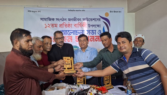 ‘মানুষ মানুষের জন্য, জীবন জীবনের জন্য’—এই স্লোগানে সামাজিক সংগঠন জনজীবন ফাউন্ডেশনের ১২তম প্রতিষ্ঠাবার্ষিকী উপলক্ষে আলোচনা সভা, গুণীজন সম্মাননা ও পুরস্কার বিতরণ অনুষ্ঠান অনুষ্ঠিত হয়েছে।